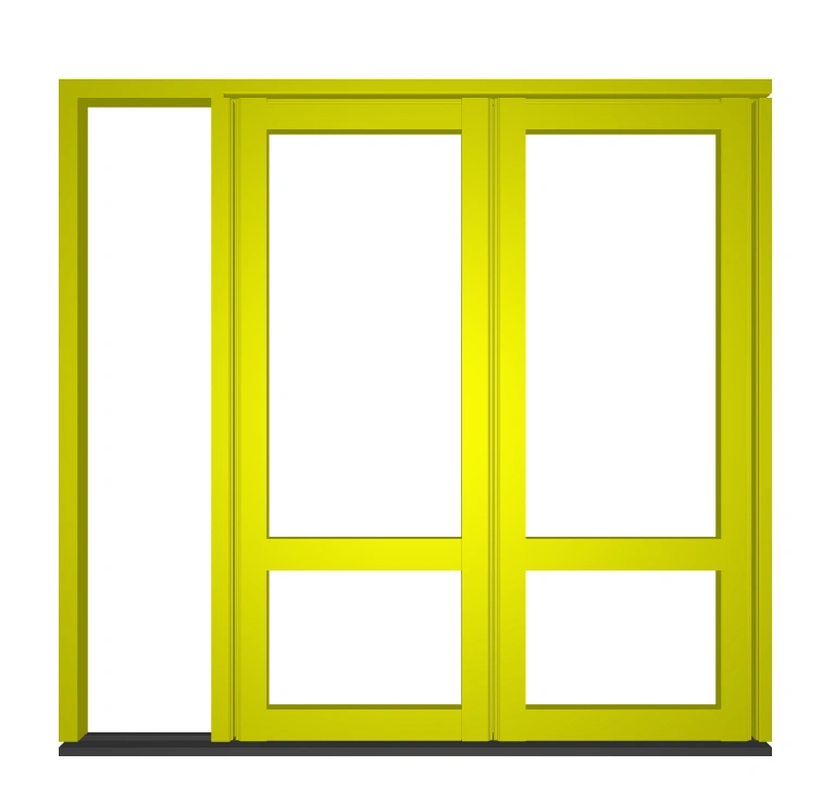 Dubbel deurkozijn met glasdeuren en rechts een zijlicht