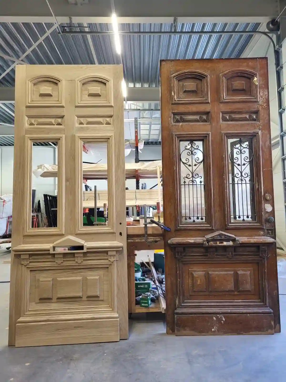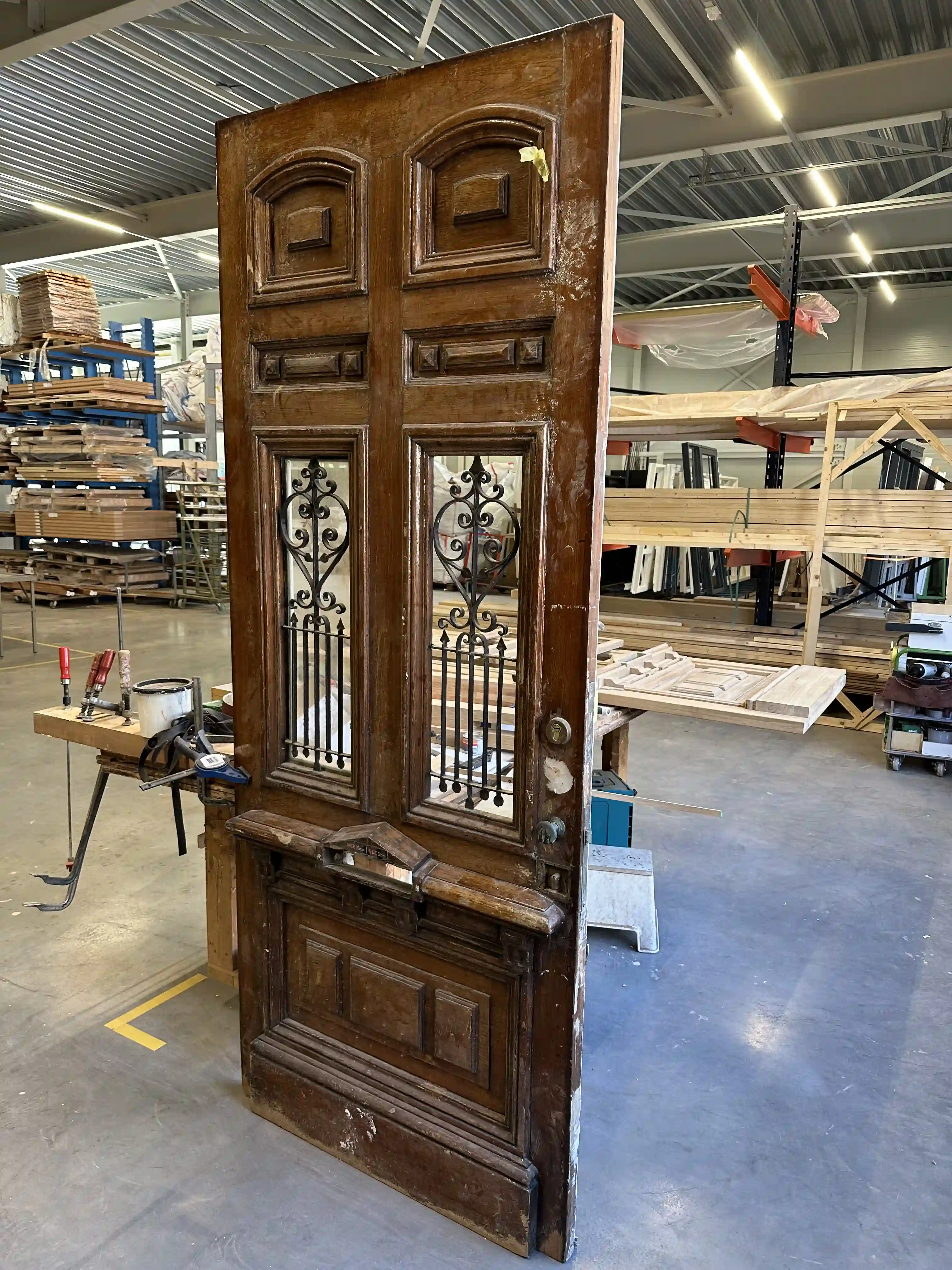 Voor dit project wilde de klant de oorspronkelijke uitstraling behouden, ondanks dat de deur beschadigd was en aan vervanging toe was. We hebben zorgvuldig hetzelfde soort hout gekozen, zodat de nieuwe deur qua houtsoort en houtnerf lijkt op de originele. Elk detail, van de vorm tot de versieringen, hebben we nauwkeurig nagemaakt.