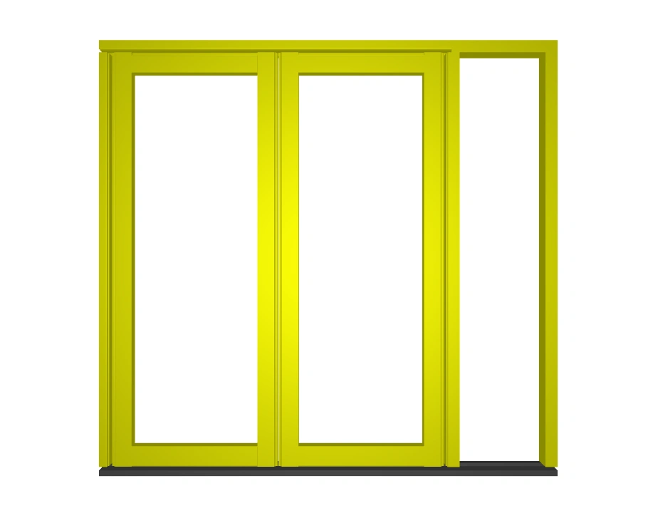 Dubbel deurkozijn met glasdeuren en rechts een zijlicht