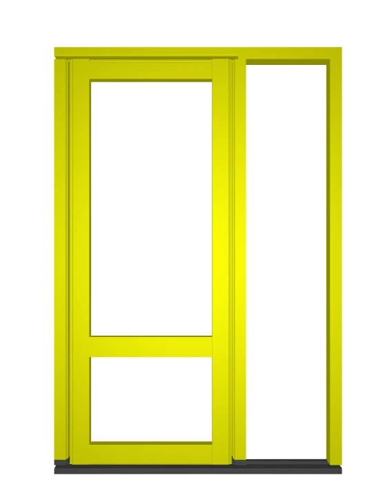 Deurkozijn met glasdeur met onder een glasvak en rechts een zijlicht