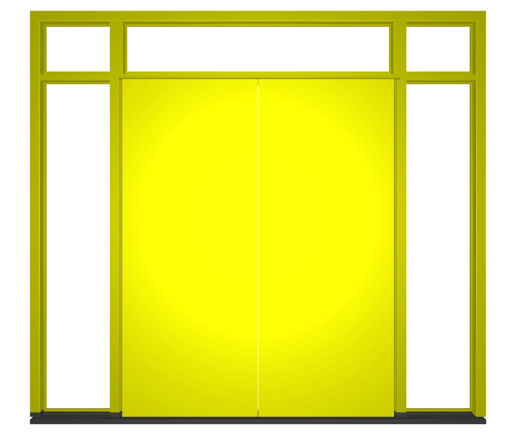 Dubbel deurkozijn inclusief glasdeuren met zijlichten en een bovenlicht