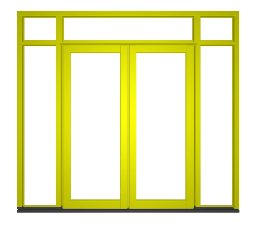 Dubbel deurkozijn inclusief glasdeuren met zijlichten en een bovenlicht