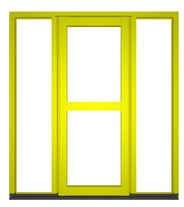 Deurkozijn met gelijk verdeelde glasvakken en aan beide kanten een zijlicht