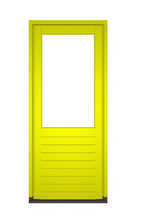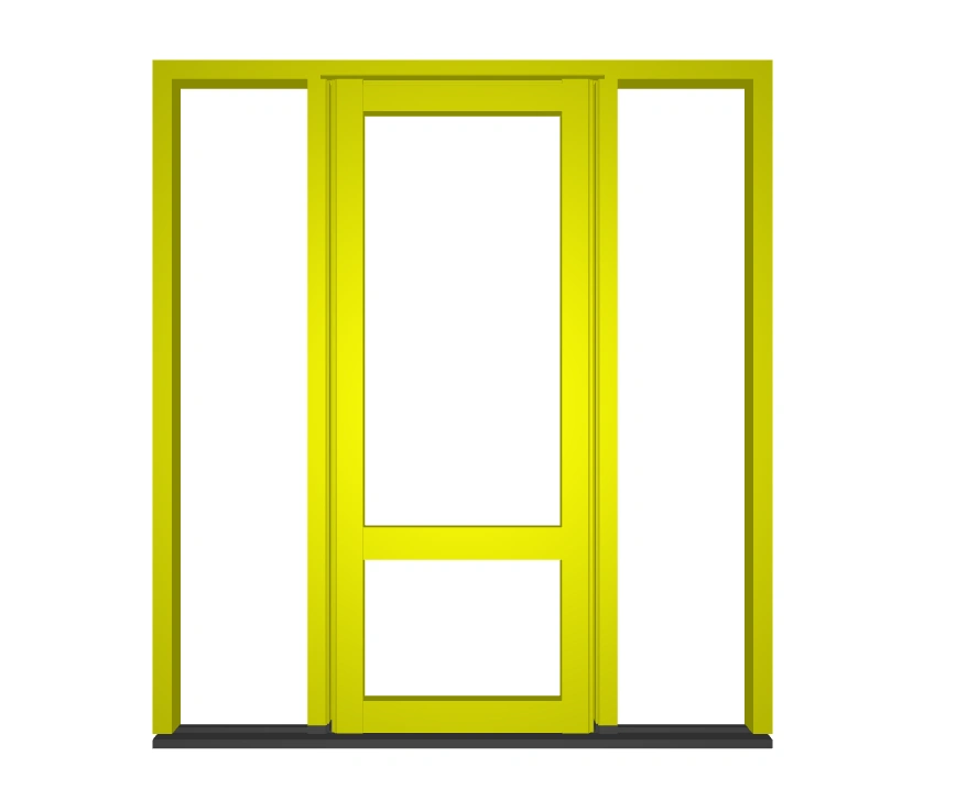 Deurkozijn met glasdeur met onder een glasvak en beide kanten zijlichten
