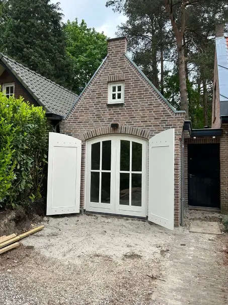 In dit project hebben wij kozijnen inclusief sierluiken geleverd voor dit prachtige bakhuisje!