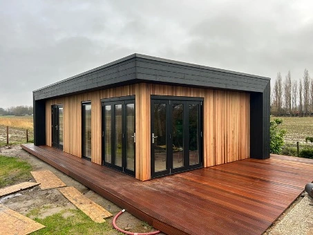 Bekijk hier deze van zwarte kozijnen voor dit luxe tuinhuis!